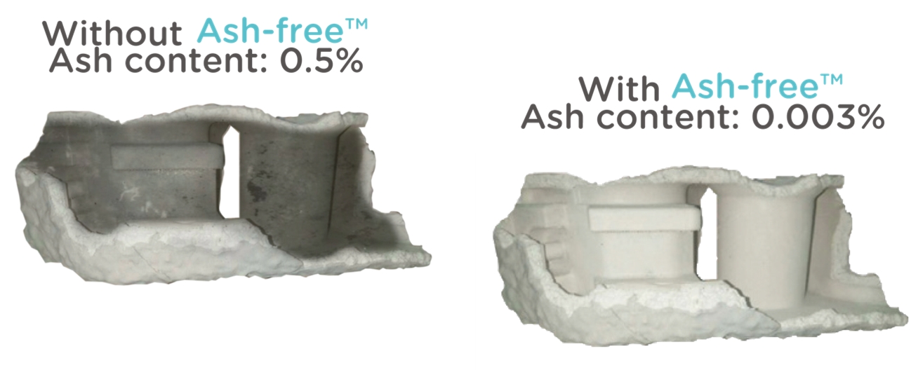Esta tecnología se utiliza en el Polycast™. Utiliza una combinación específica de diferentes componentes elegidos con precisión para crear un material para fundición. Estos componentes son cuidadosamente seleccionados para quemarse sin dejar residuos.