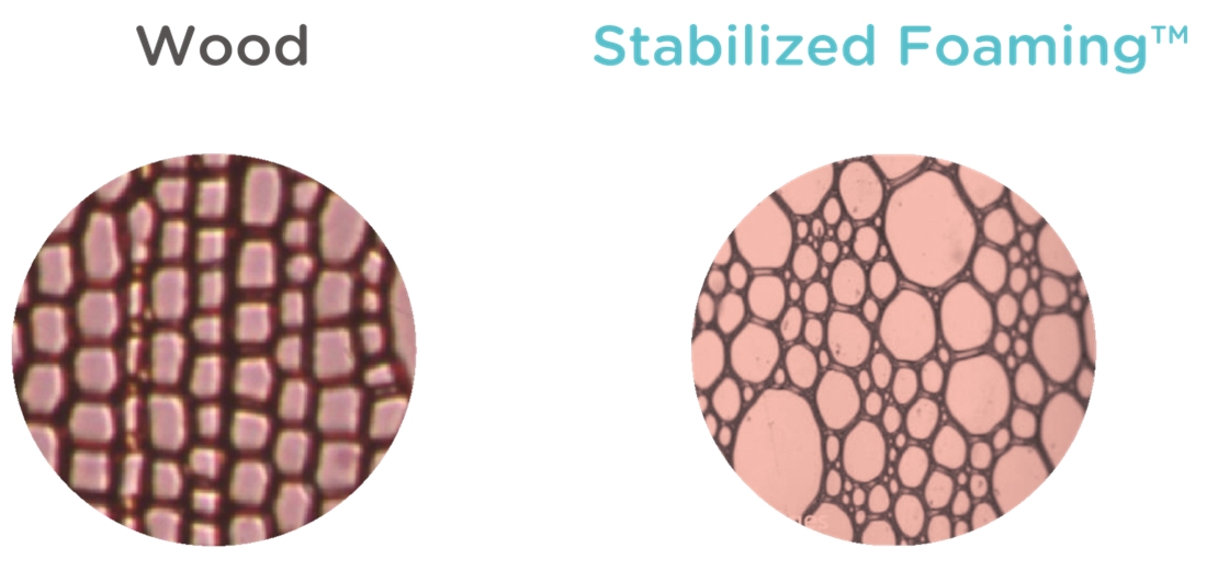 Polymaker se dio cuenta de que la razón principal de la apariencia de la madera era su estructura celular vegetal y su color. Fue fácil copiar el color de cierta madera, y la estructura celular vegetal se copió utilizando un agente espumante, creando una red celular similar.