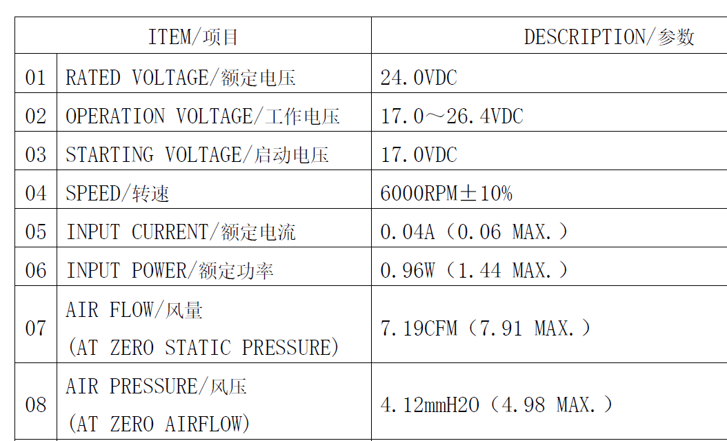 아래는 관련 팬 사양입니다.