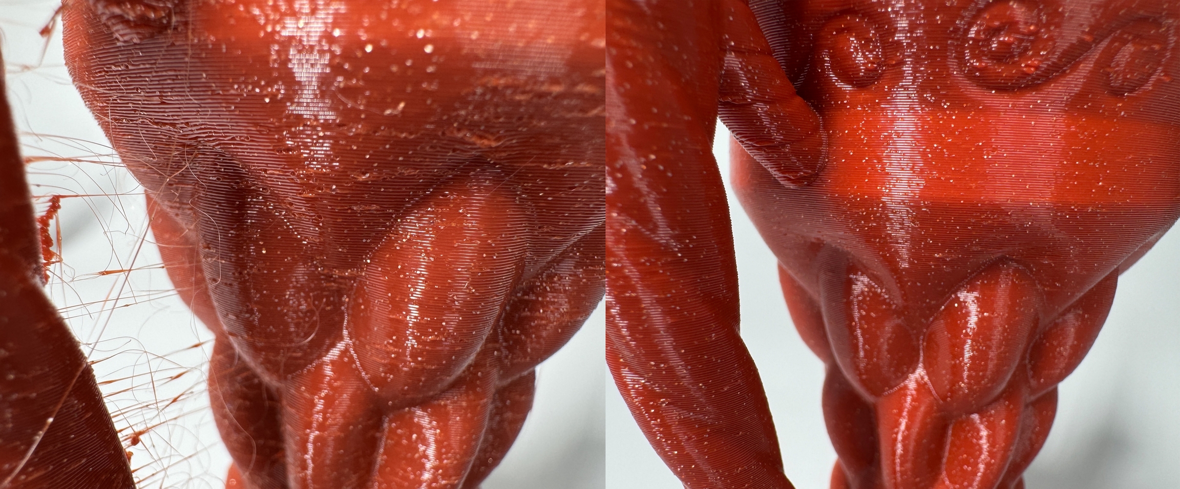 출력 품질 저하: 표면이 거칠고, 기포가 생기고, 레이어가 약하고 잘 부서질 수 있습니다. PETG에서는 특히 잘 보입니다.