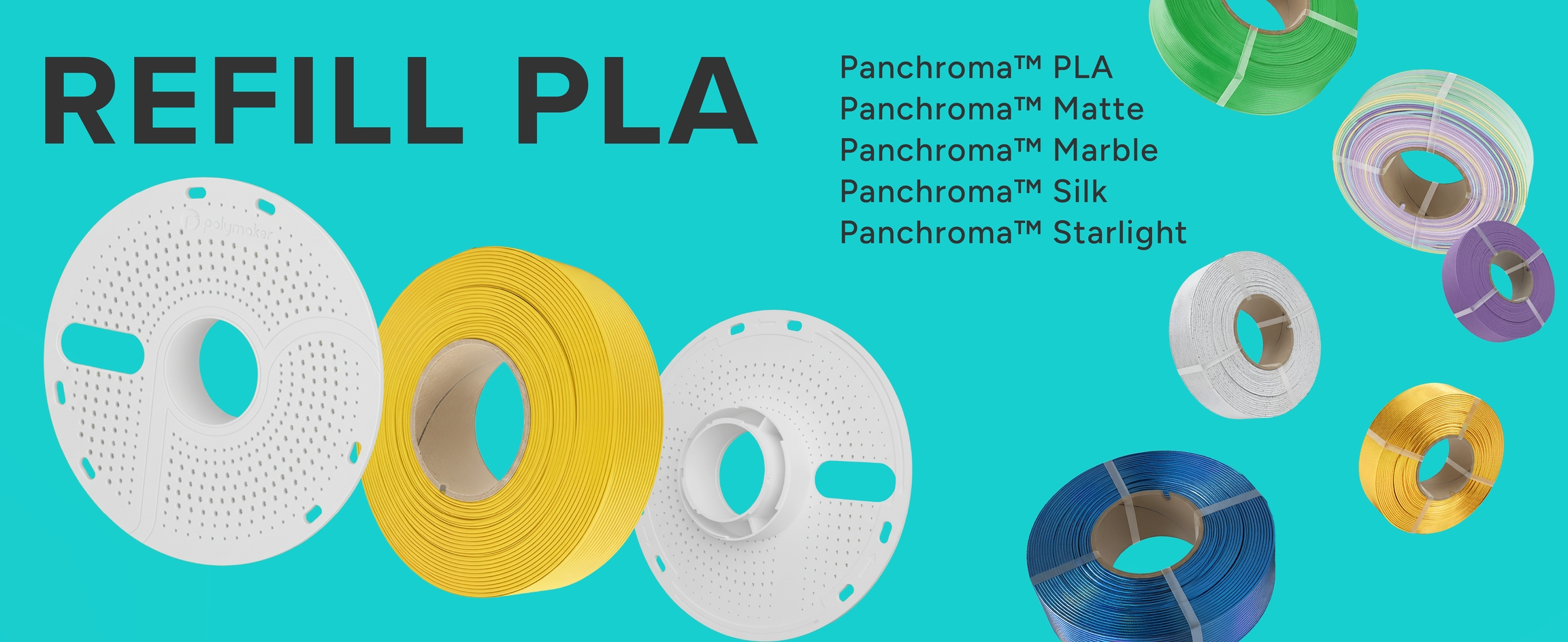 Panchroma™ Refill은 재사용 스풀 시스템용으로 설계된 저폐기 버전의 프리미엄 PLA입니다.