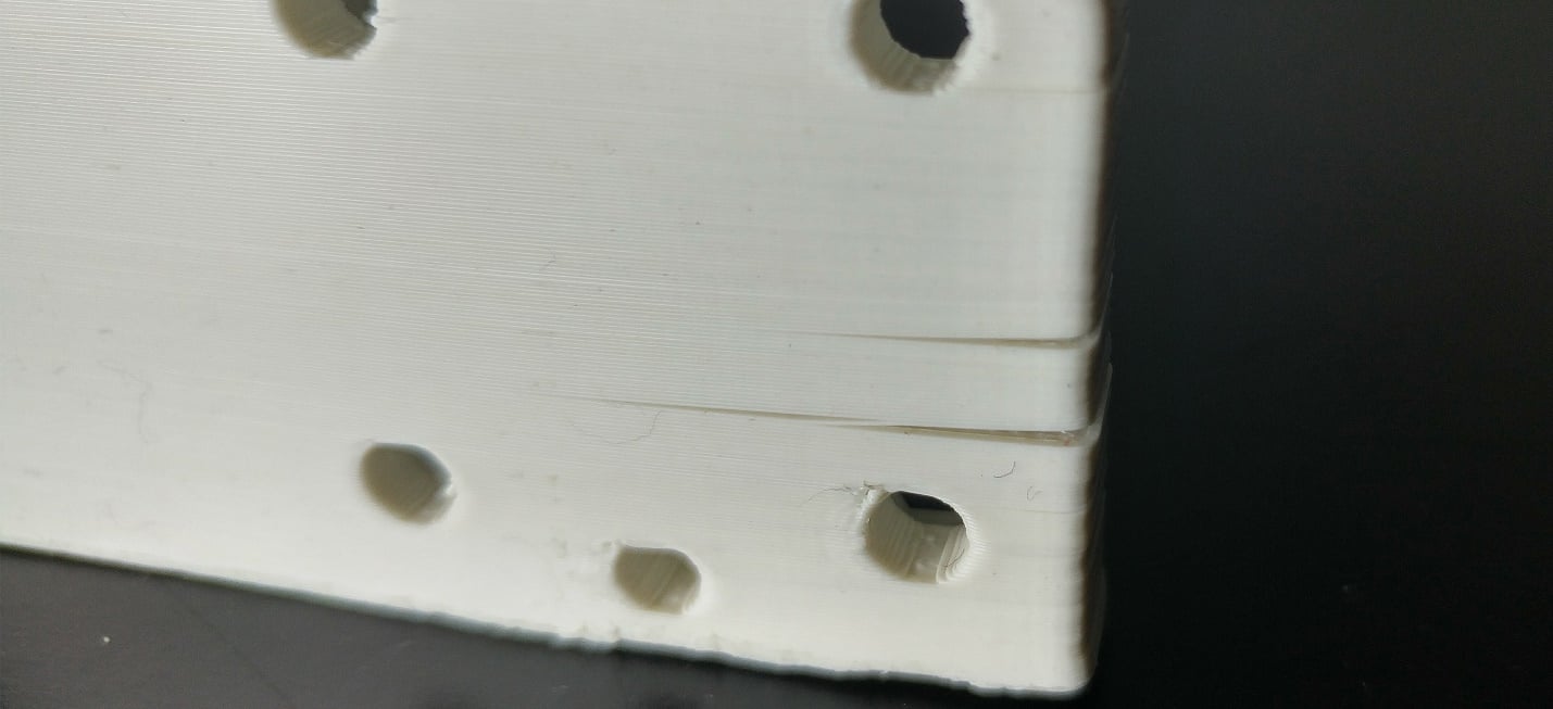 Delamination is when two layer will separate from one another, even when taking in all the layer adhesion precautions. This is because of the same temperature gradients and internal stresses explained earlier, but it occurs when bottom layers are stuck extremely well to the build plate.